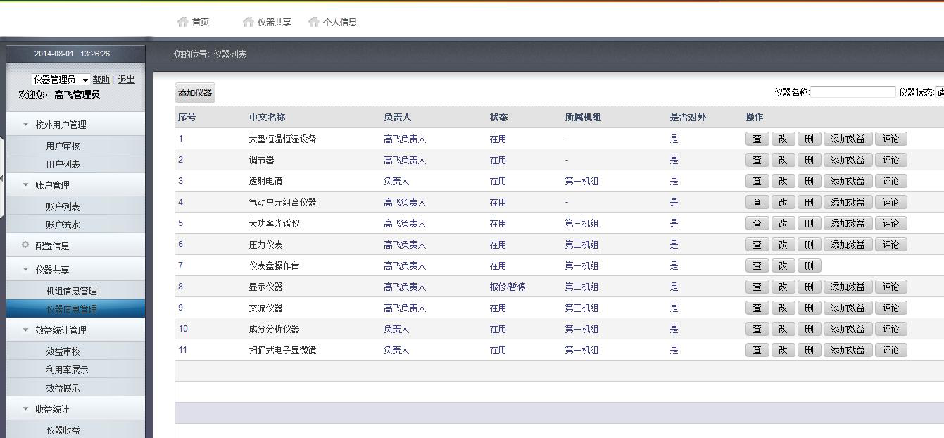 大型儀器設(shè)備共享管理系統(tǒng)