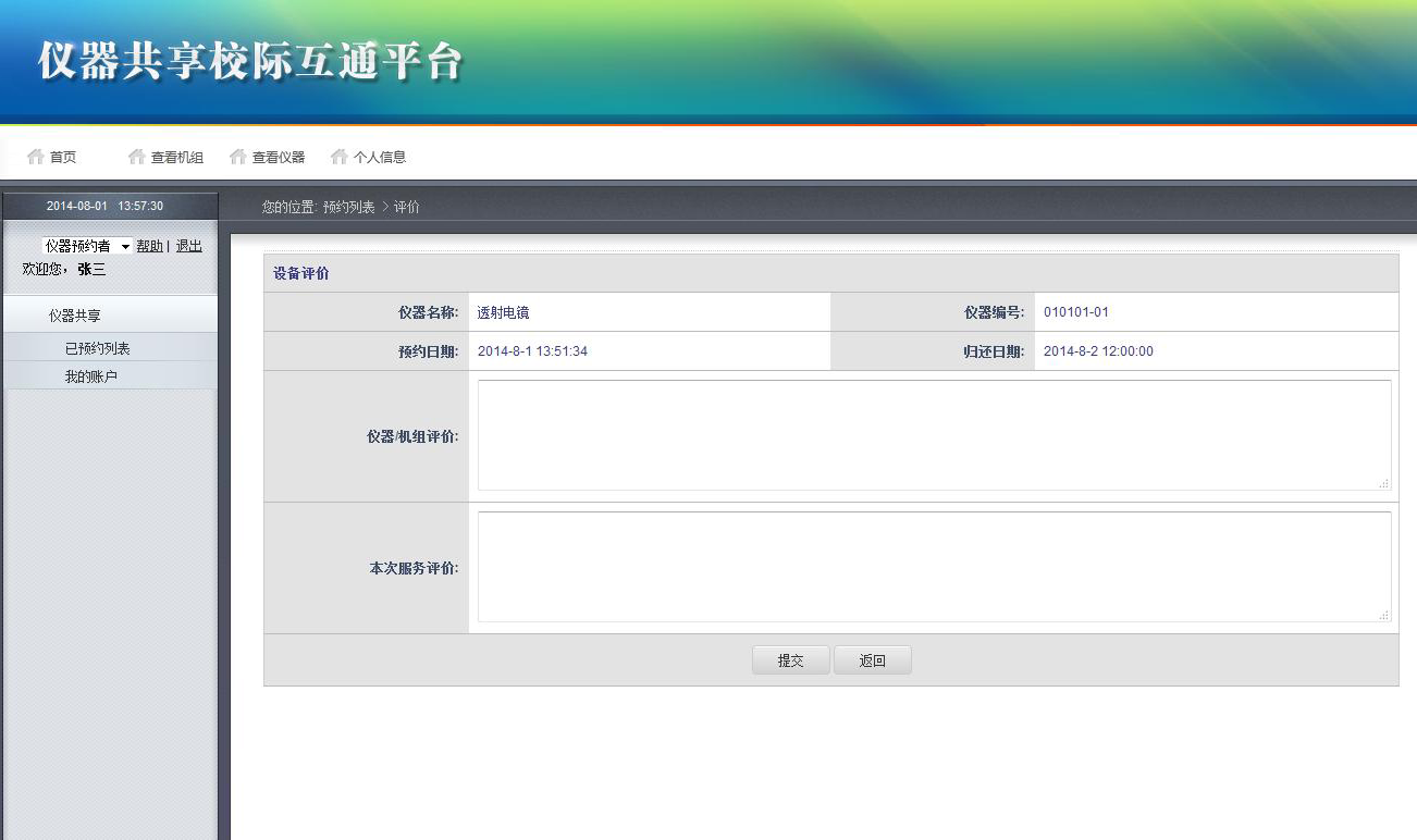 3)儀器預(yù)約管理