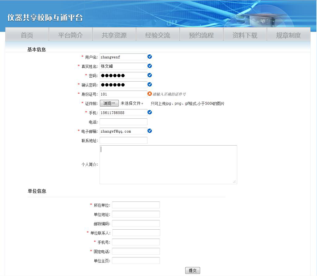 校外用戶可以在本系統(tǒng)中注冊(cè)賬號(hào)(校內(nèi)用戶不用注冊(cè)),并且可以修改個(gè)人信息。設(shè)備管理員可以添加、刪除、修改用戶的信息。