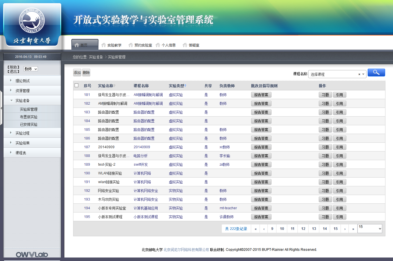 開放式實(shí)驗(yàn)教學(xué)與實(shí)驗(yàn)室管理系統(tǒng)以服務(wù)大中專院校實(shí)驗(yàn)室全面實(shí)施信息化管理,提高實(shí)驗(yàn)室的管理水平為宗旨,以全面提供實(shí)驗(yàn)室管理的解決方案為導(dǎo)向,是實(shí)驗(yàn)室實(shí)現(xiàn)信息化管理的重要基礎(chǔ)支撐系統(tǒng)。