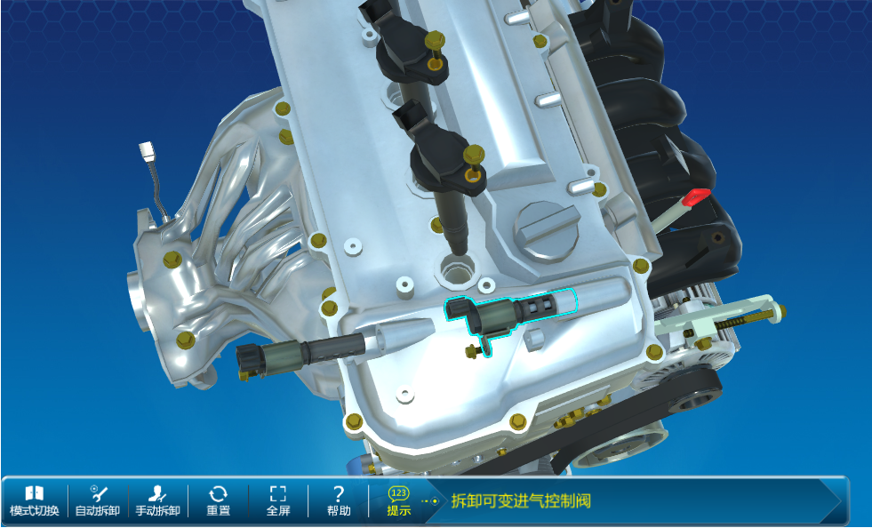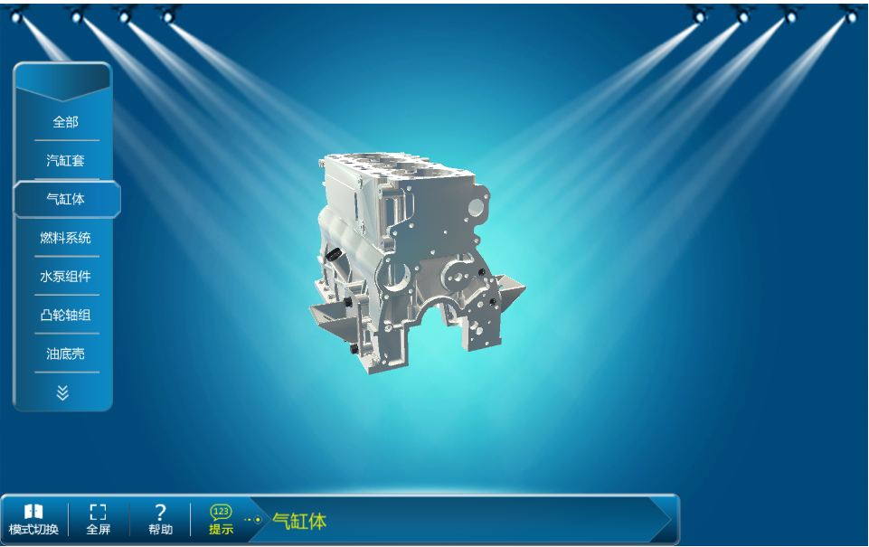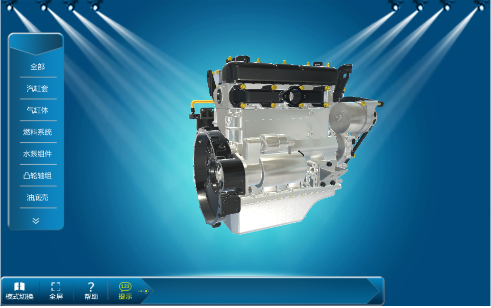 以三維互動(dòng)的形式,展現(xiàn)發(fā)動(dòng)機(jī)的結(jié)構(gòu)組成、燃燒系統(tǒng)、進(jìn)排氣系統(tǒng)。