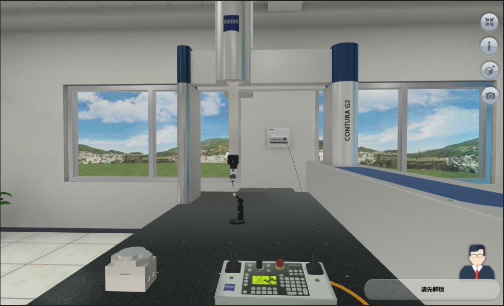 本系統(tǒng)系統(tǒng)采用三維建模技術對實驗室、三坐標實驗設備等進行1:1建模重構。本系統(tǒng)支持鼠標、鍵盤交互。能夠在場景中漫游,通過旋轉視角,可以任意角度,近距離觀察場景中元素細節(jié)。系統(tǒng)中鼠標放置到實驗儀器上有名稱提示框彈出和高光顯示;本系統(tǒng)具有實驗原理展示功能。本系統(tǒng)有全屏功能,能夠在全屏/窗口模式下切換。本系統(tǒng)具有操作幫助面板提示功能,能夠指導用戶如何操作。