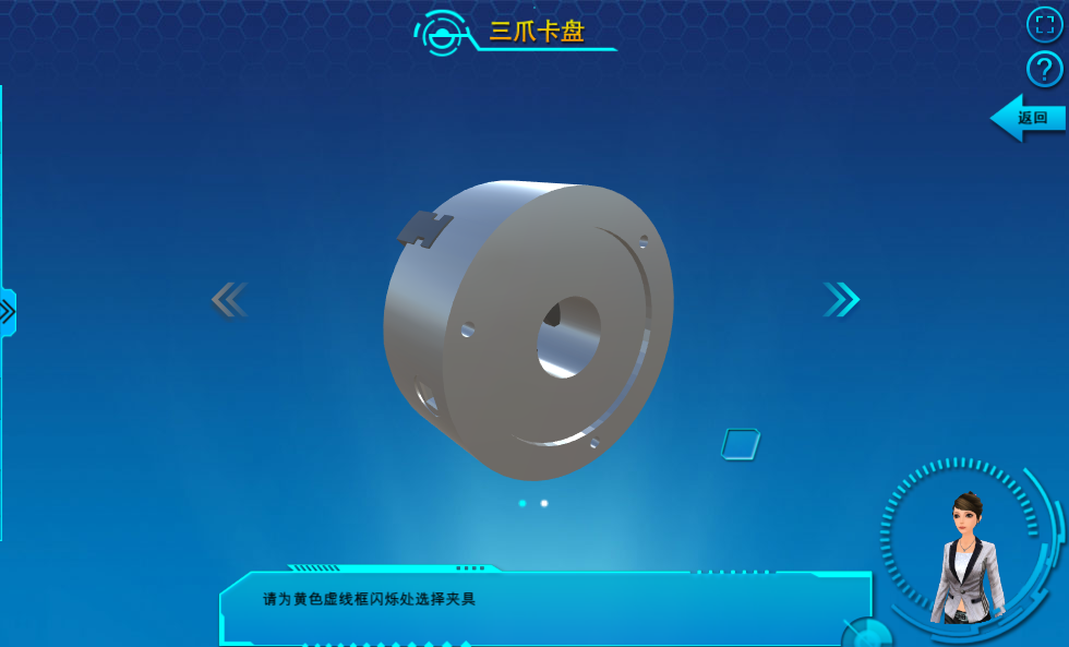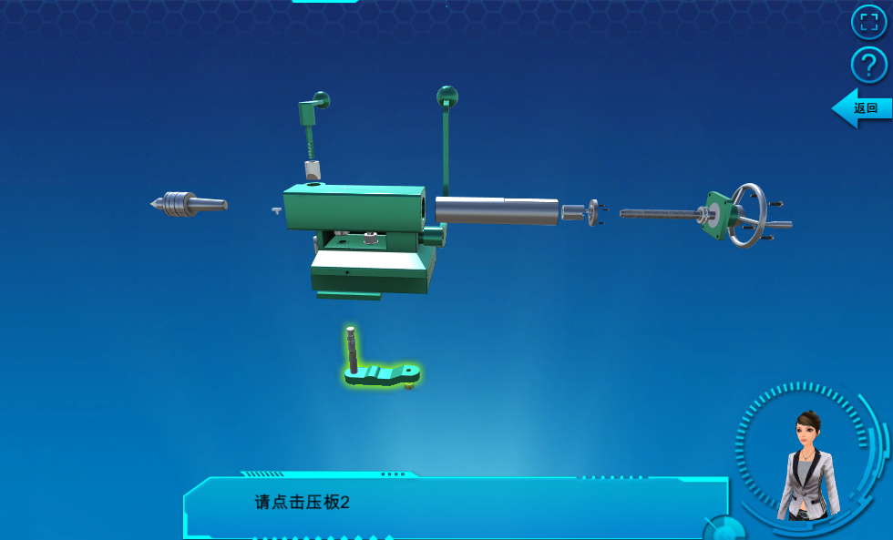 實(shí)驗(yàn)過程中穿插有小練習(xí),系統(tǒng)隨機(jī)出題,如果學(xué)生的操作錯(cuò)誤,系統(tǒng)會(huì)指出錯(cuò)誤并給出正確答案,以這樣的方式考察和鞏固學(xué)生對(duì)車床的認(rèn)知。