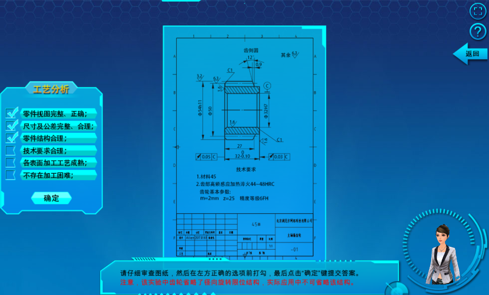 工藝性分析環(huán)節(jié),軟件隨機(jī)給出一張正確/錯(cuò)誤的圖紙供用戶分析,從而很好地避免抄襲現(xiàn)象的發(fā)生。