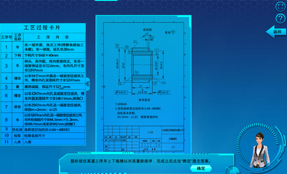 該實(shí)驗(yàn)?zāi)M了一套完整的機(jī)械加工工藝規(guī)程設(shè)計(jì)過程:工藝性分析——確定毛坯——擬定工藝過程——選擇機(jī)床——選擇夾具——選擇刀具——計(jì)算工序尺寸——確定切削用量。通過該實(shí)驗(yàn),使用戶熟悉工藝規(guī)程設(shè)計(jì)的過程及要點(diǎn)。