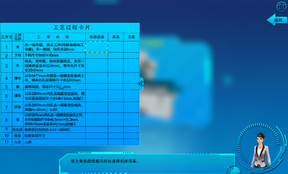 機(jī)床選擇環(huán)節(jié),用戶需根據(jù)工序安排,選擇正確的機(jī)床,提供選擇錯(cuò)誤會(huì)有提示,并重新選擇。