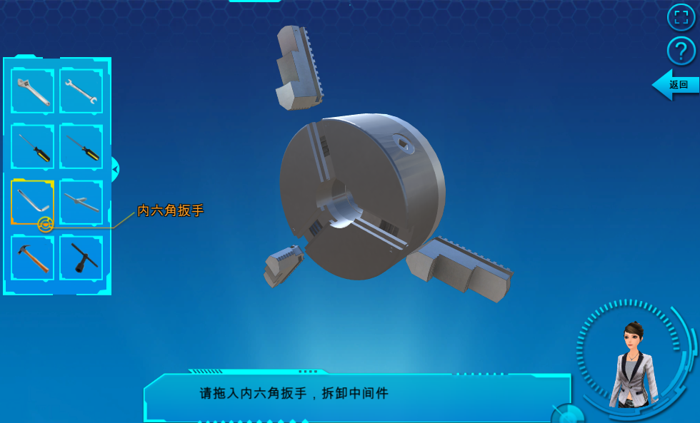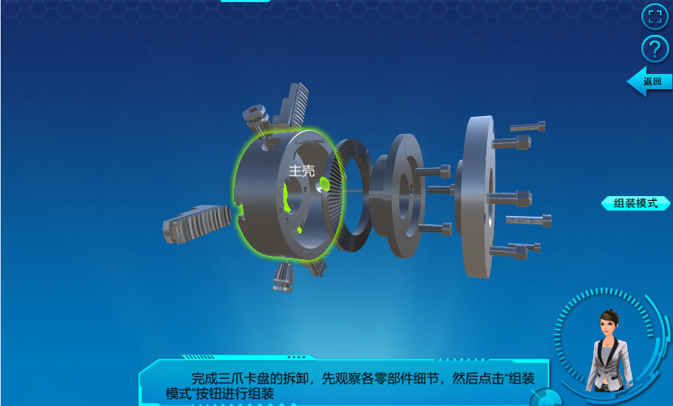 針對(duì)以上三大部件,分別設(shè)有拆卸模式、工作原理、組裝模式三種模式,可自由選擇模式進(jìn)入相應(yīng)的實(shí)驗(yàn)。
