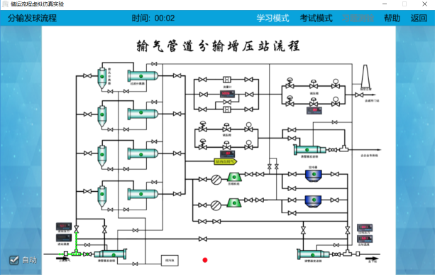 為了以最少的經(jīng)費投入解決以上問題,并進一步激發(fā)學生的學習興趣、增強實驗效果、提高實驗教學質(zhì)量,我們開發(fā)了油氣儲運三維虛擬實驗教學系統(tǒng)。該軟件分為學習模式和考核模式,在考核模式下,可對該虛擬實驗的知識點進行考核。可滿足高等學校和各類培訓機構(gòu)實驗教學環(huán)節(jié)的需要,尤其適用于遠程教學。