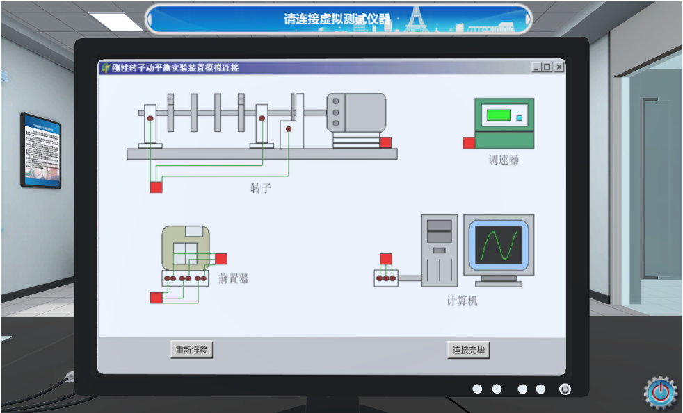 本虛擬實(shí)驗(yàn)提供了實(shí)驗(yàn)裝置的虛擬連接和轉(zhuǎn)子裝置在實(shí)驗(yàn)過(guò)程中的具體操作,虛擬基頻檢測(cè)儀和相關(guān)測(cè)試儀器的使用,學(xué)者通過(guò)能夠掌握轉(zhuǎn)子動(dòng)平衡的原理和操作。
