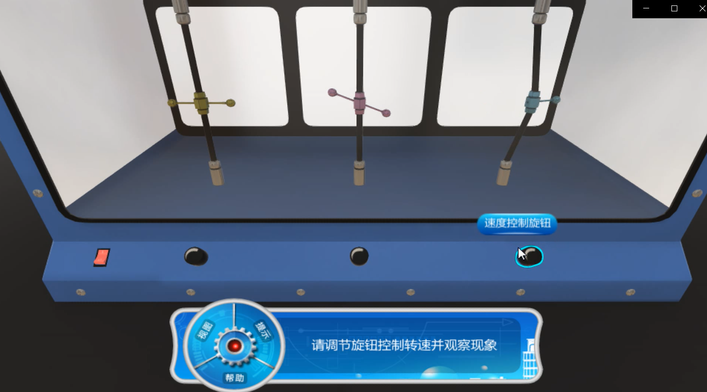 本實(shí)驗(yàn)提供了離心慣性力演示過(guò)程,通過(guò)配有電機(jī)和控制器可以實(shí)現(xiàn)轉(zhuǎn)速控制下離心慣性力的現(xiàn)象。演示儀設(shè)有防護(hù)玻璃、觀察窗和燈光等,不僅為使用者提供了運(yùn)行的安全,還達(dá)到良好的觀測(cè)效果。
