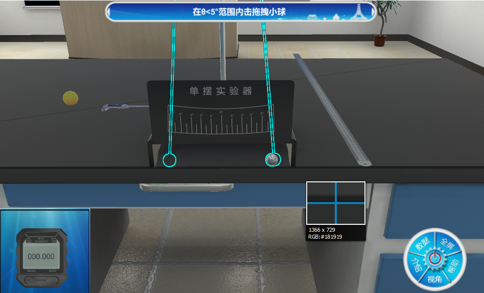 本虛擬實(shí)驗(yàn)提供鋼球和乒乓球兩種材質(zhì)小球開(kāi)展實(shí)驗(yàn),固定小球單擺范圍θ<5°,取小球擺動(dòng)周期多次,減小系統(tǒng)誤差,達(dá)到實(shí)驗(yàn)數(shù)據(jù)靈活處理,通過(guò)周期公式反解出重力加速度,并通過(guò)實(shí)驗(yàn)對(duì)比兩種材質(zhì)小球?qū)嶒?yàn)現(xiàn)象,得出空氣浮力對(duì)測(cè)重力加速度的影響,從而得出測(cè)重力加速度的影響因素。