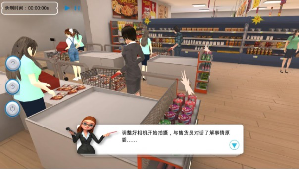 為了以最少的經(jīng)費(fèi)投入解決以上問題,激發(fā)學(xué)生的學(xué)習(xí)興趣、增強(qiáng)實(shí)驗(yàn)效果、提高教學(xué)質(zhì)量,我們開發(fā)了攝像技術(shù)虛擬實(shí)驗(yàn)教學(xué)系統(tǒng)。本系統(tǒng)包含多人聯(lián)機(jī)多迅道虛擬演播廳、新聞視頻采集、新聞采訪與寫作3個(gè)需求場(chǎng)景,每種場(chǎng)景提供相應(yīng)的器材、劇情、室內(nèi)或戶外環(huán)境。此外,可將實(shí)驗(yàn)過程中拍攝的視頻導(dǎo)出獨(dú)立文件。